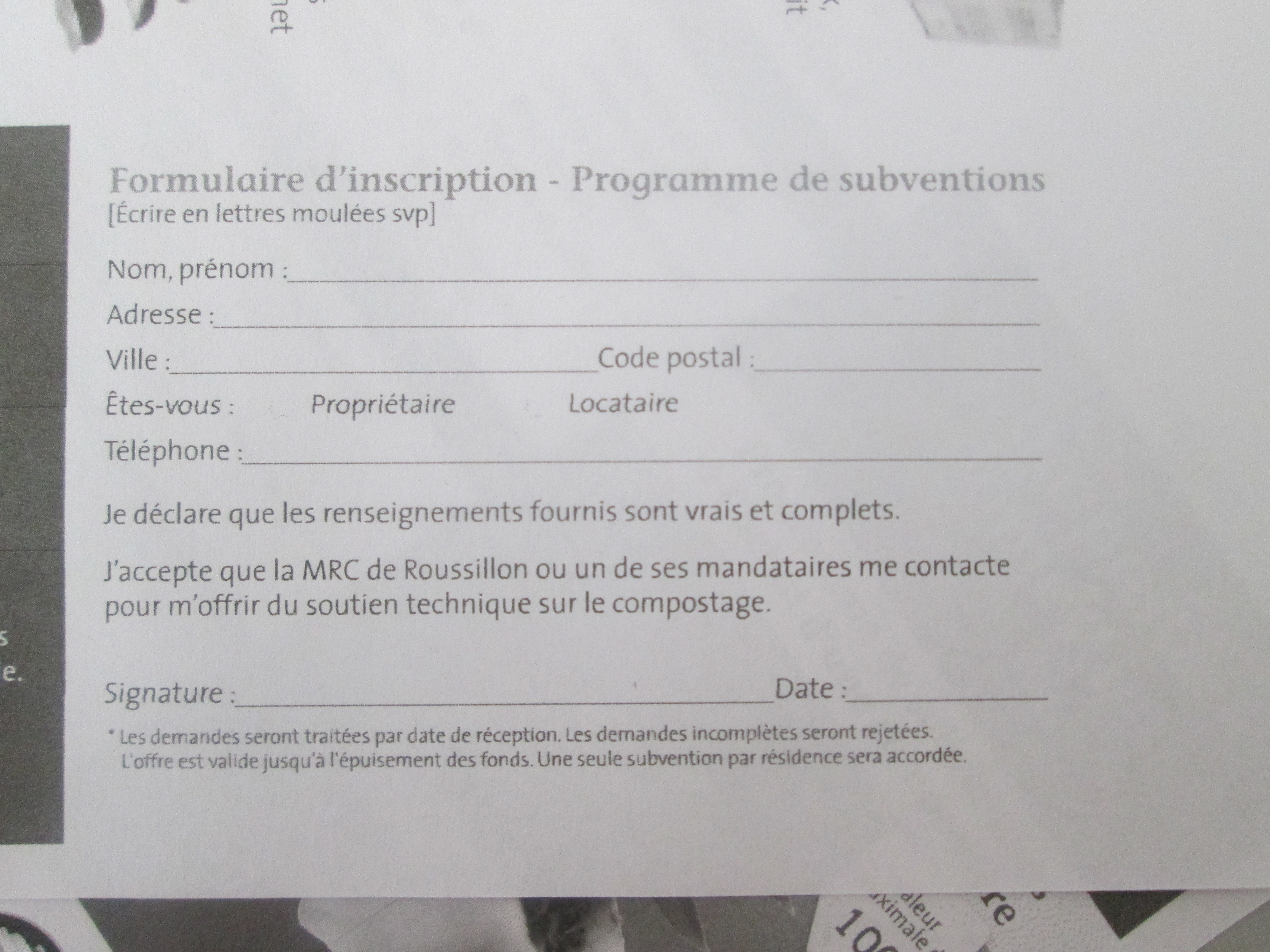 Le vermicompostage a d’abord été notre premier choix; mais avec les restrictions de la ville quant aux odeurs et autres désagréments dus au compostage, nous avons préféré opter pour un tambour. Aussi, avec ce formulaire