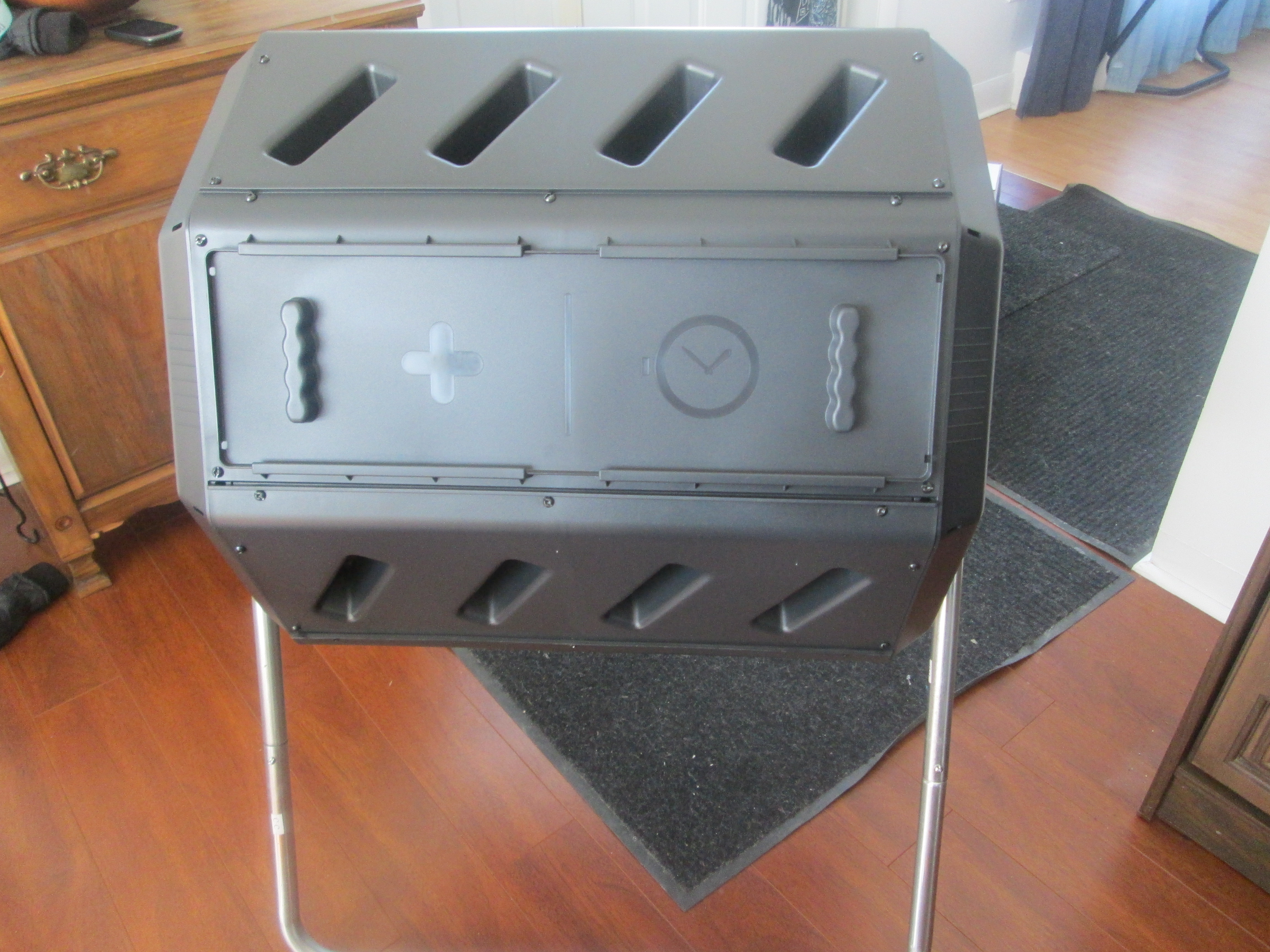 Dans notre démarche vers un mode de vie plus écolo, nous avons aujourd’hui fait l’acquisition d’un composteur. 🙂