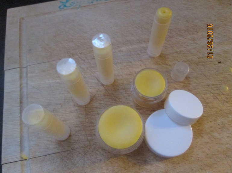 Après quelques minutes de fonte, l’ajout des huiles et autres ingrédients, quelques secondes pour couler le tout dans les tubes et les pots et quelques heures à laisser le tout durcir et refroidir, notre première recette de baume à lèvres maison avait vu le jour et n’attendait que M. Bonheur à son retour de l’école pour être testée sur le principal intéressé!